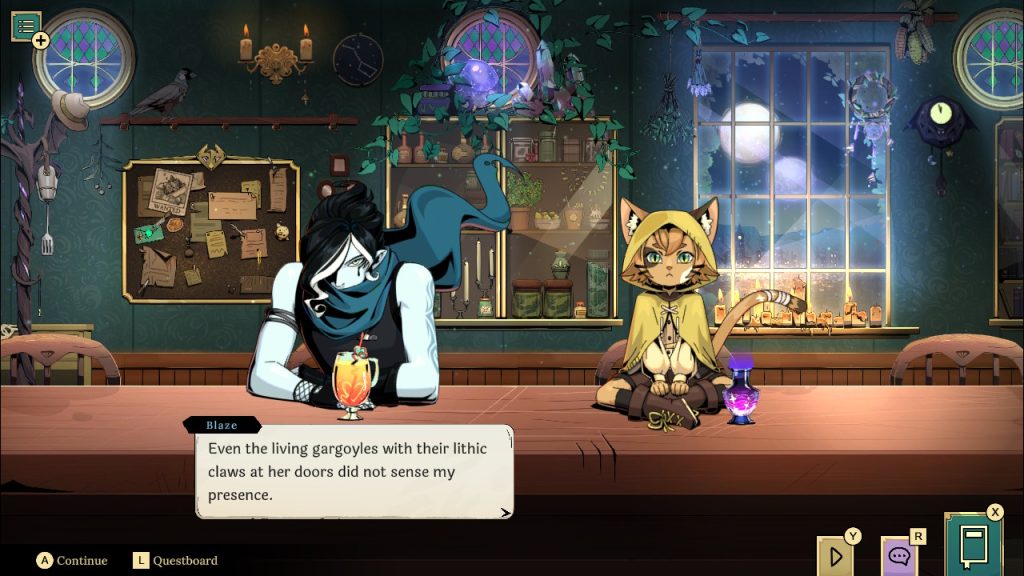Tavern Talk is a cozy visual novel where you play as a nameless barkeep serving a variety of high-fantasy adventuring party caricatures at Wayfarer’s Inn of Asteria. From behind the counter, you’ll listen to guests’ stories, mix helpful enchanted drinks, and organize various rumors into complete quest lines for your job board. Mostly, you’ll just read and listen—soaking in the odd tales from a unique and lovable assortment of patrons as they come and go about their day.